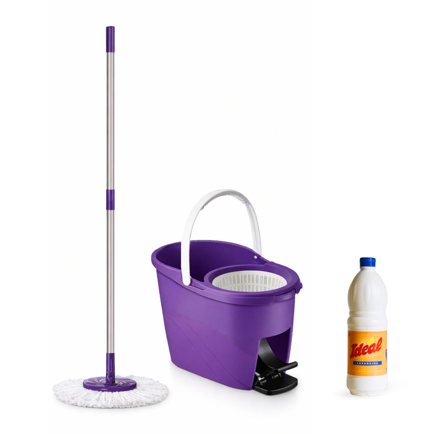Balde con Mopa Giratoria 360° a Pedal con Cabo de Acero + Hipoclorito de REGALO
