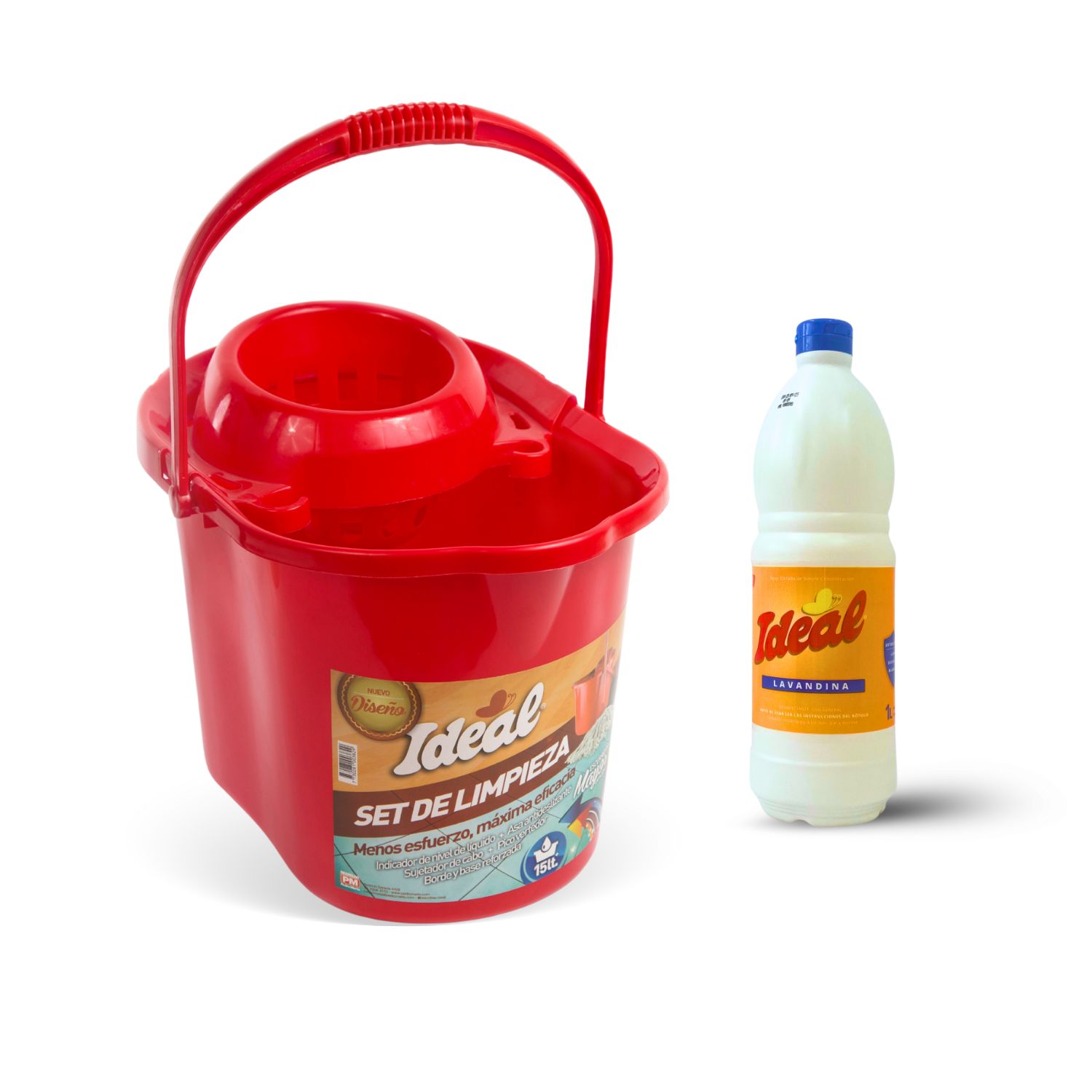 Balde Oval y Escurridor Ideal 15 Litros + 1L Hipoclorito Ideal