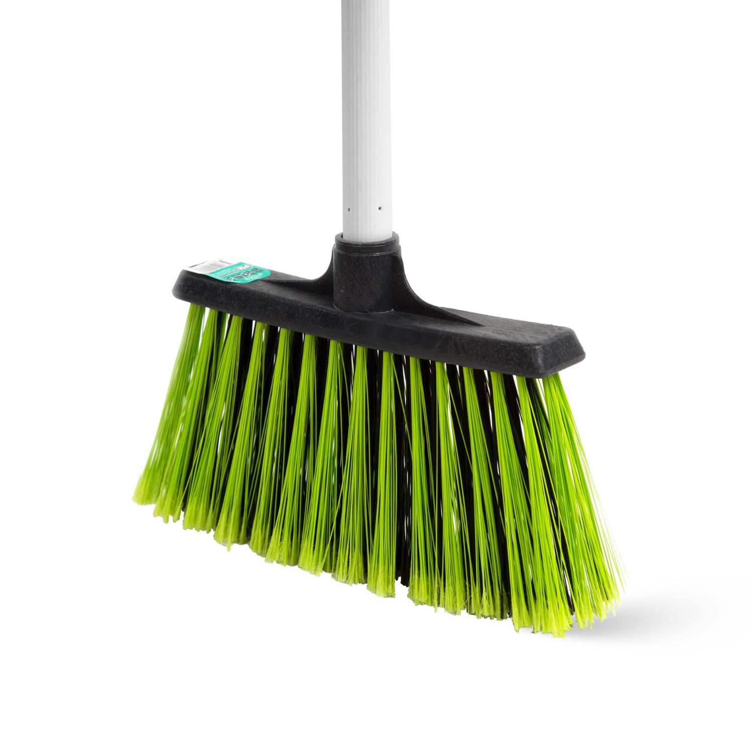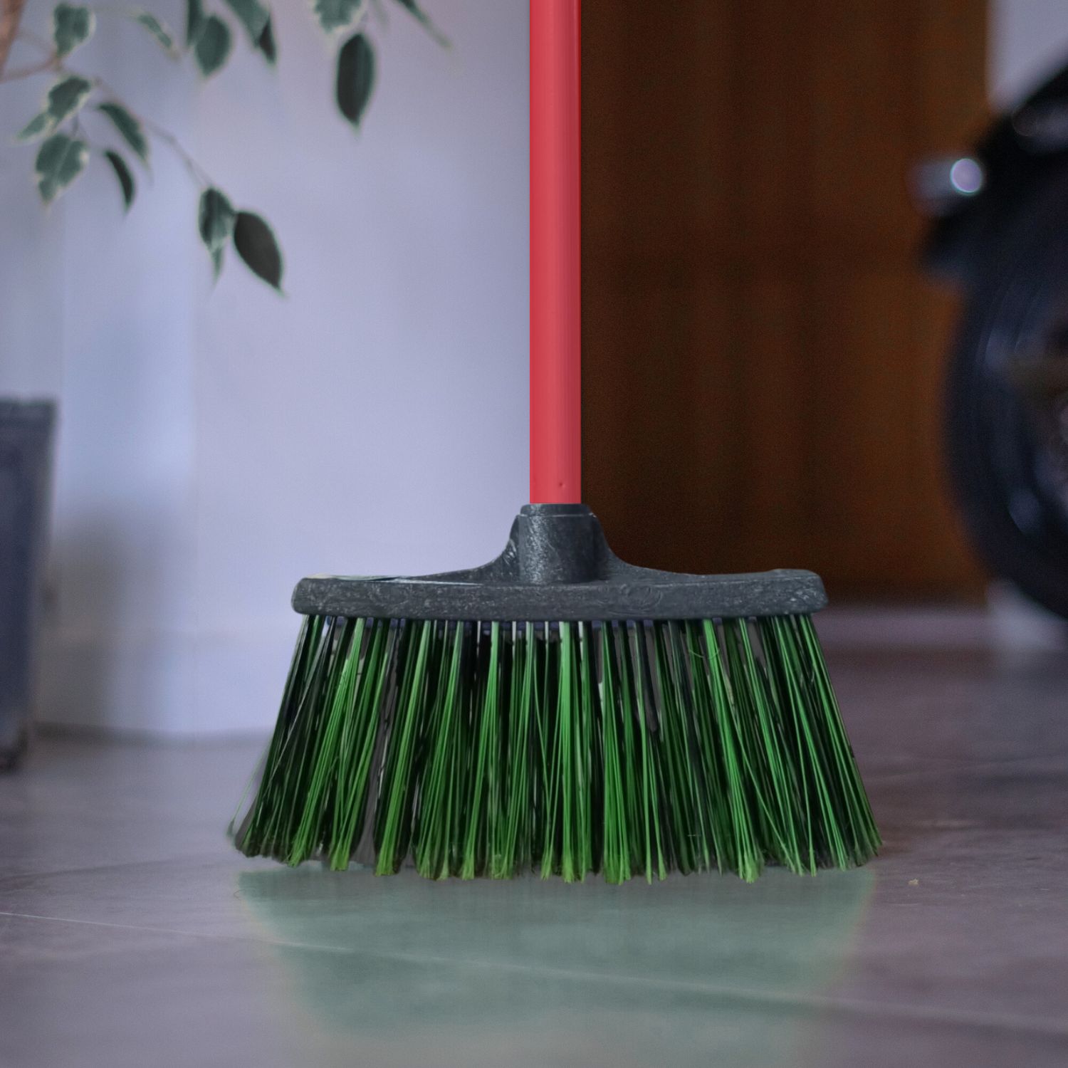 La Escoba Brisa Ideal es una solución simple, eficiente y económica para quienes buscan mantener sus espacios limpios sin complicaciones. Fabricada con materiales resistentes y livianos, su cabezal negro cuenta con cerdas sintéticas en verde y negro que permiten barrer polvo, tierra y residuos ligeros con agilidad.
