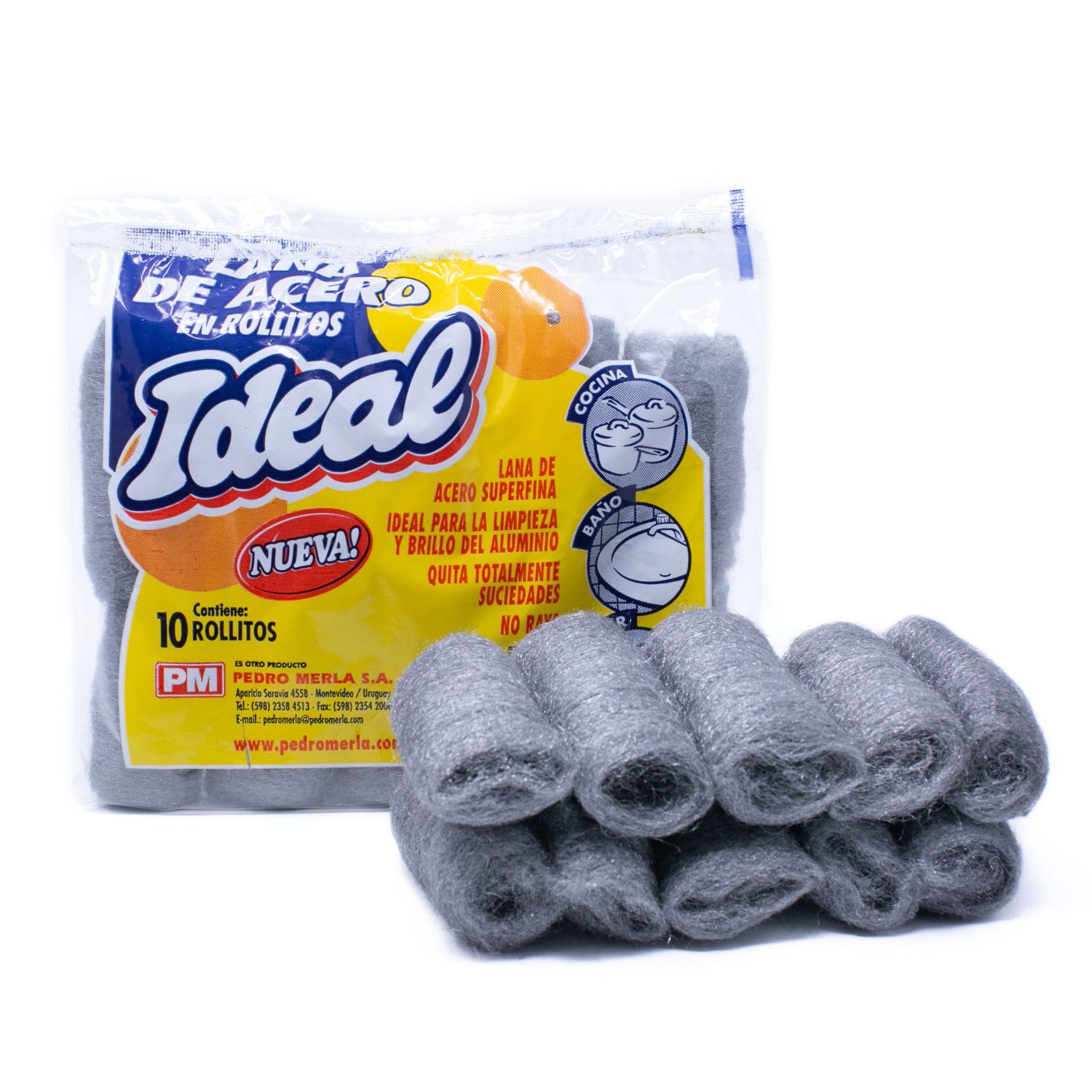 La Lana de Acero en Rollitos Ideal – Pack 10 + 2 gratis es ideal para limpiezas profundas en superficies resistentes. Su poder abrasivo permite eliminar grasa, óxido y suciedad difícil de forma eficaz, siendo una herramienta esencial tanto para el hogar como para uso profesional.
