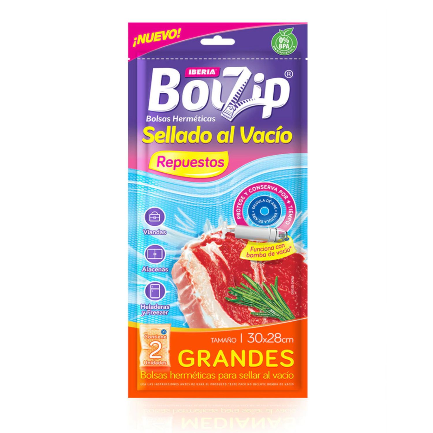 Repuesto x2 Bolsas Sellado al Vacío Grandes (30x28cm) Bolzip